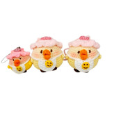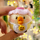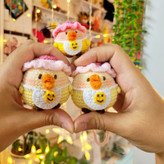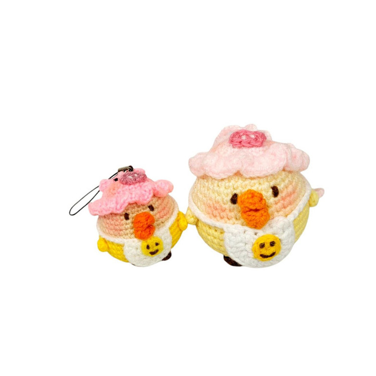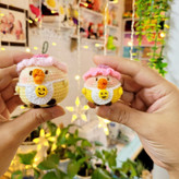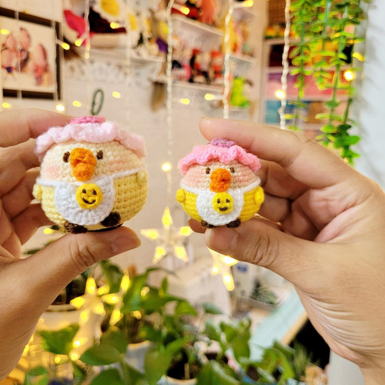 آویز جا کلیدی قلاب بافی خانواده کپل اردک که ۲ عدد سایز بزرگ و یک عدد سایز کوچک بافته شده است. سایز بزرگ یکی به صورت سرکلیدی و یکی هم با بند بلند برای آویز کیف یا آینه ماشین و ... آماده شده و اندازه آن حدود 5×5 سانت است. سایز کوچیک، بند آویز موبایل دارد و برای آویز موبایل، جامدادی و... مناسب است و اندازه آن حدود 3.5×3.5 سانت است این سری محصول با کاموای مرغوب خارجی و تماماً کار دست است و قلاب بافی شده و با الیاف درجه یک پر شده و خانواده ای بسیار بانمک و جذاب هستند و اکسسوری پیشبند و کلاه دارند. این محصول شامل ۳ عدد کپل اردک پدر،مادر و بچه هست و برای تزئین، هدیه، آویز کیف و کوله و جامدادی، سوئیچ و آینه ماشین و ... مناسب است.