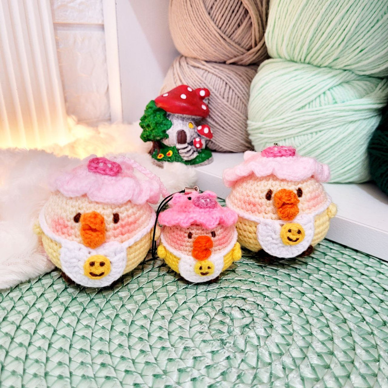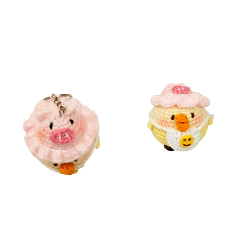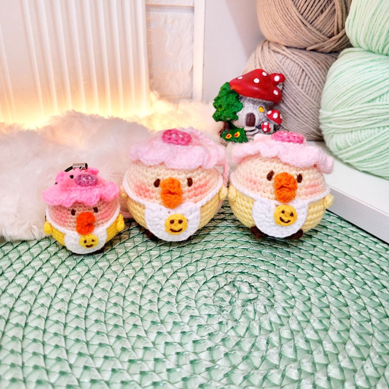آویز جا کلیدی قلاب بافی خانواده کپل اردک که ۲ عدد سایز بزرگ و یک عدد سایز کوچک بافته شده است. سایز بزرگ یکی به صورت سرکلیدی و یکی هم با بند بلند برای آویز کیف یا آینه ماشین و ... آماده شده و اندازه آن حدود 5×5 سانت است. سایز کوچیک، بند آویز موبایل دارد و برای آویز موبایل، جامدادی و... مناسب است و اندازه آن حدود 3.5×3.5 سانت است این سری محصول با کاموای مرغوب خارجی و تماماً کار دست است و قلاب بافی شده و با الیاف درجه یک پر شده و خانواده ای بسیار بانمک و جذاب هستند و اکسسوری پیشبند و کلاه دارند. این محصول شامل ۳ عدد کپل اردک پدر،مادر و بچه هست و برای تزئین، هدیه، آویز کیف و کوله و جامدادی، سوئیچ و آینه ماشین و ... مناسب است.