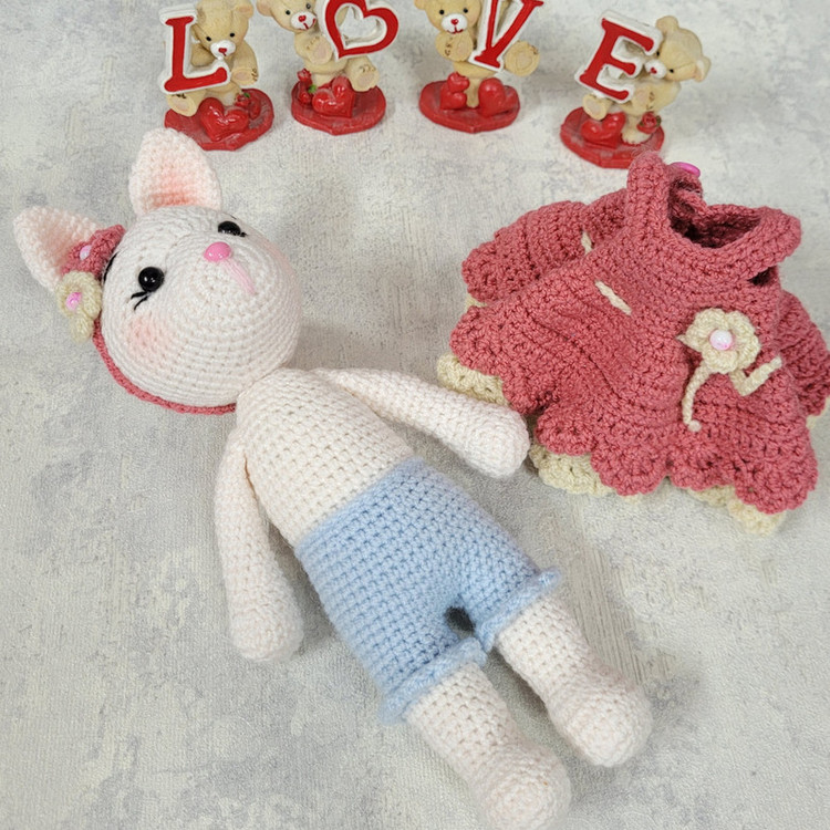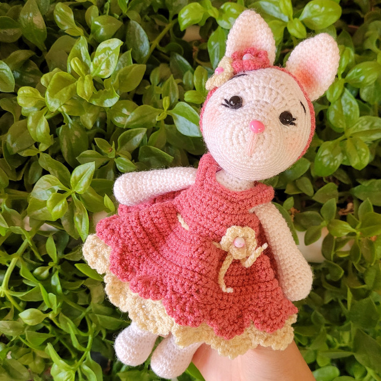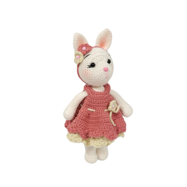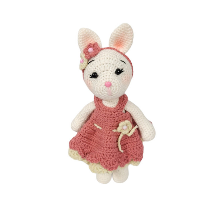 عروسک قلاب بافی خرگوش کوچولی خانم رز مدل ROZ24 که خیلی ناز و خوشگل شده با کاموای مرغوب ایرانی بافته شده و با الیاف درجه یک پر شده تل برای کودک شما حساسیت ایجاد نکنه. چشمای خانم رز واشردار و ایمن هست و برای کودک دلبند شما خطرناک نیست. لباس این مدل قابل تعویض و کلا عروسک و لباسش قابل شستشو هست. قد خانم رز 24 سانت هست.