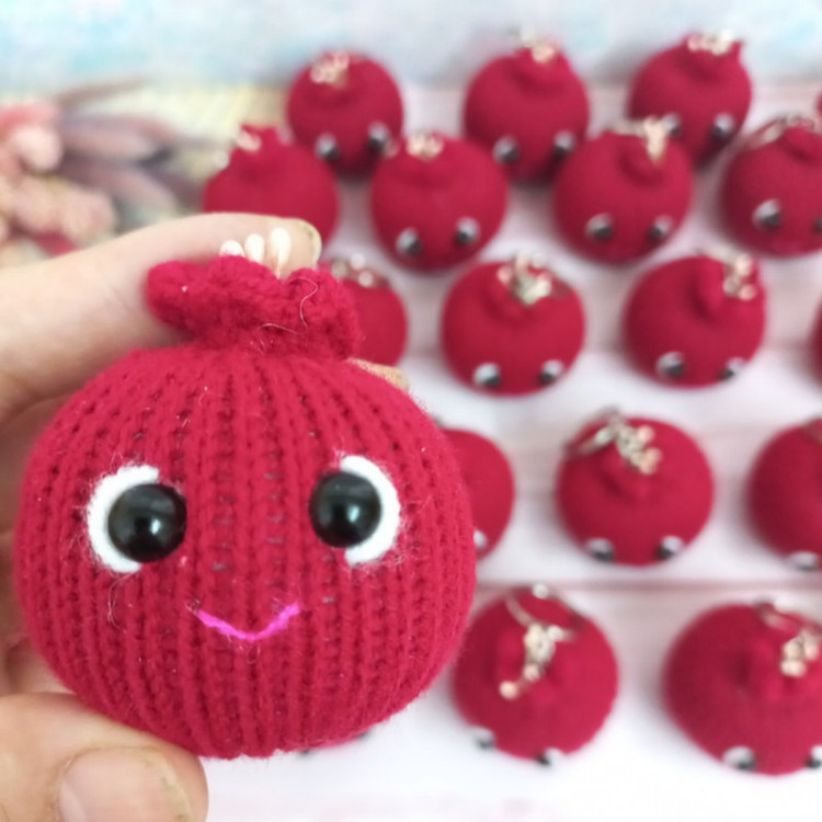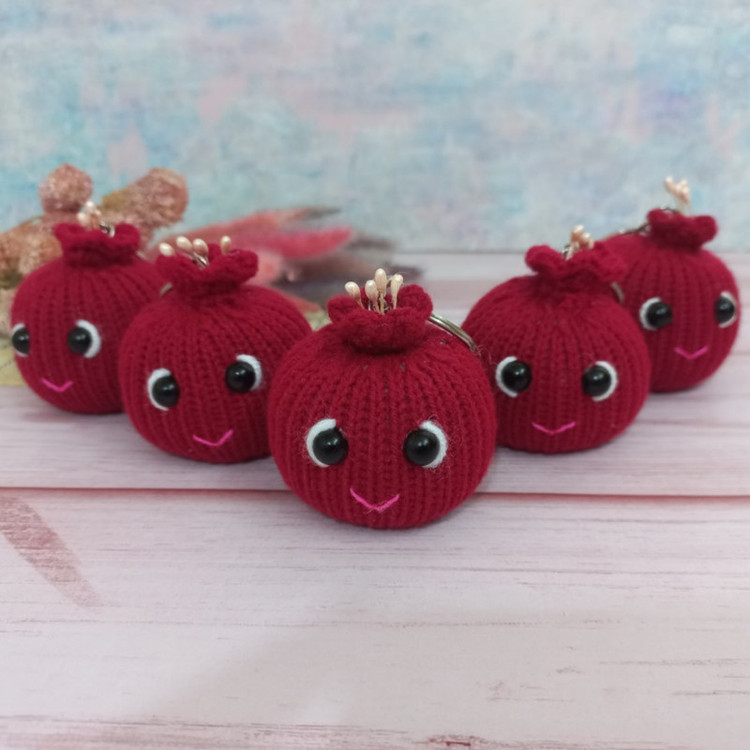 آویز بافتنی انار شب یلدا که به صورت سرکلیدی آماده شده و اندازه آن 5×5×6 سانت است. این محصول با کاموای مرغوب ایرانی بافته شده و با الیاف درجه یک پر شده و بسیار بانمک و جذاب است.