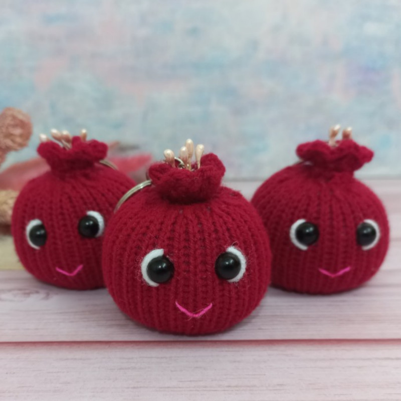آویز بافتنی انار شب یلدا که به صورت سرکلیدی آماده شده و اندازه آن 5×5×6 سانت است. این محصول با کاموای مرغوب ایرانی بافته شده و با الیاف درجه یک پر شده و بسیار بانمک و جذاب است.