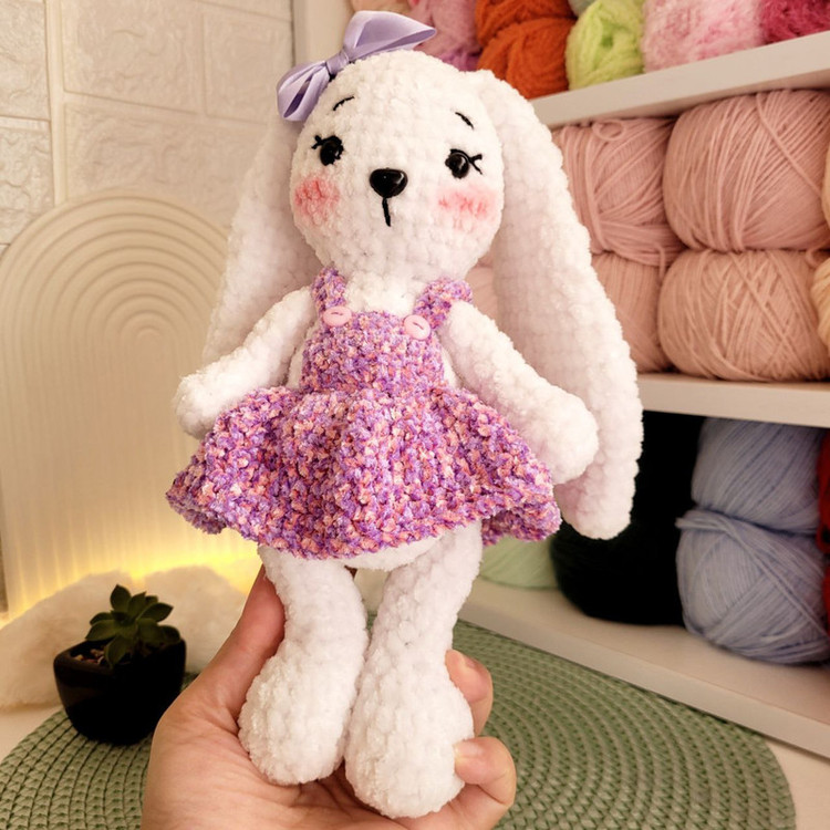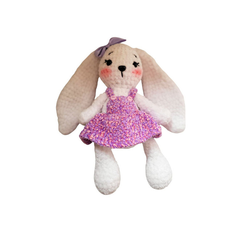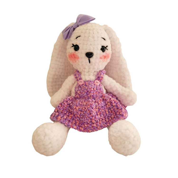 عروسک قلاب بافی مدل خرگوش نرمالو با کاموای مخمل بافته شده و با الیاف درجه یک پر شده است. این عروسک جذاب با پاهای متحرک قابلیت نشستن دارد و برای ایستادن نیاز به تکیه گاه دارد. ارتفاع عروسک حدود ۲۷ سانت است. چشمهای خرگوش واشردار و ایمن است و برای بازی کودکان و یا دکوری مناسب است. قابل شستشو با دست و ماشین لباسشویی با آب سرد است.