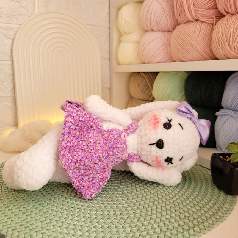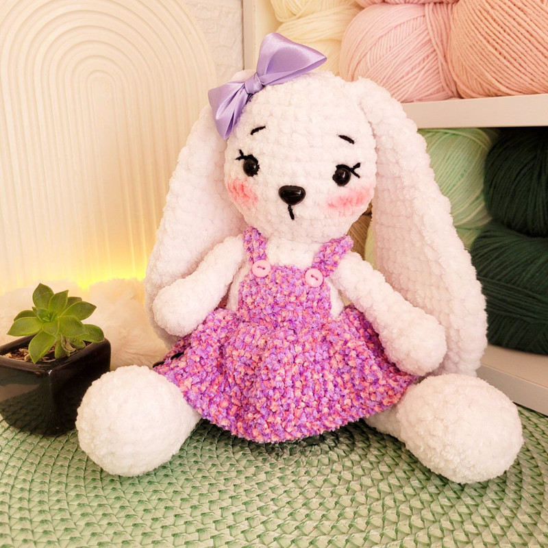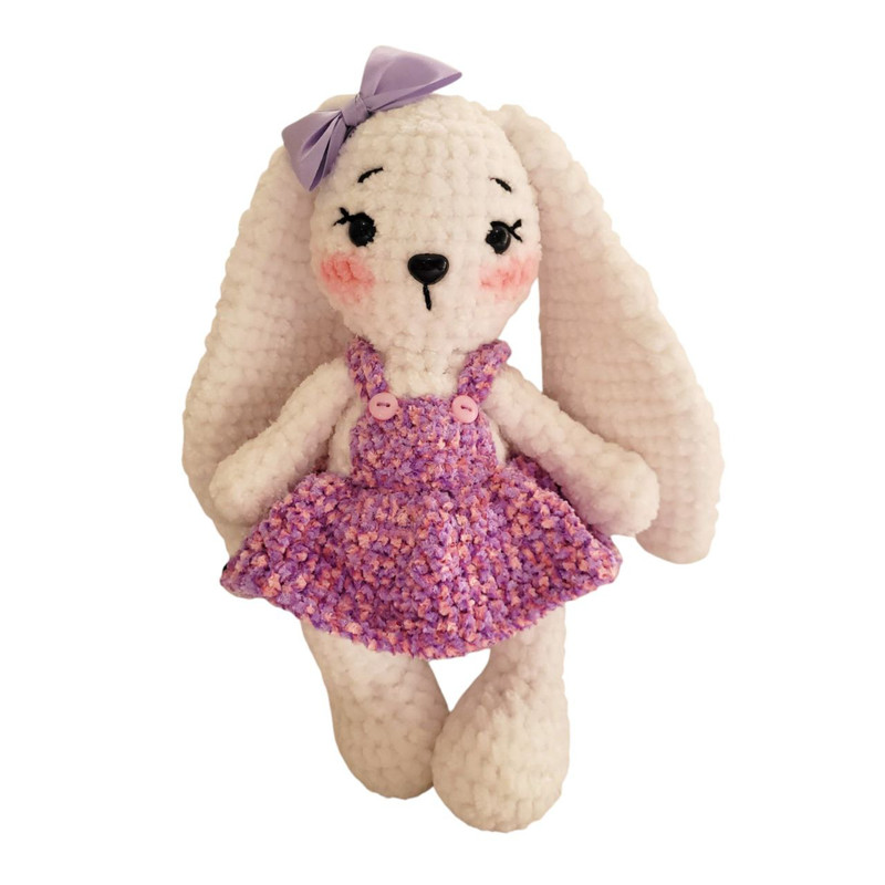 عروسک قلاب بافی مدل خرگوش نرمالو با کاموای مخمل بافته شده و با الیاف درجه یک پر شده است. این عروسک جذاب با پاهای متحرک قابلیت نشستن دارد و برای ایستادن نیاز به تکیه گاه دارد. ارتفاع عروسک حدود ۲۷ سانت است. چشمهای خرگوش واشردار و ایمن است و برای بازی کودکان و یا دکوری مناسب است. قابل شستشو با دست و ماشین لباسشویی با آب سرد است.