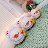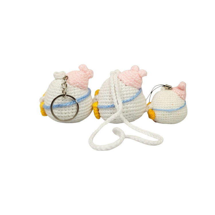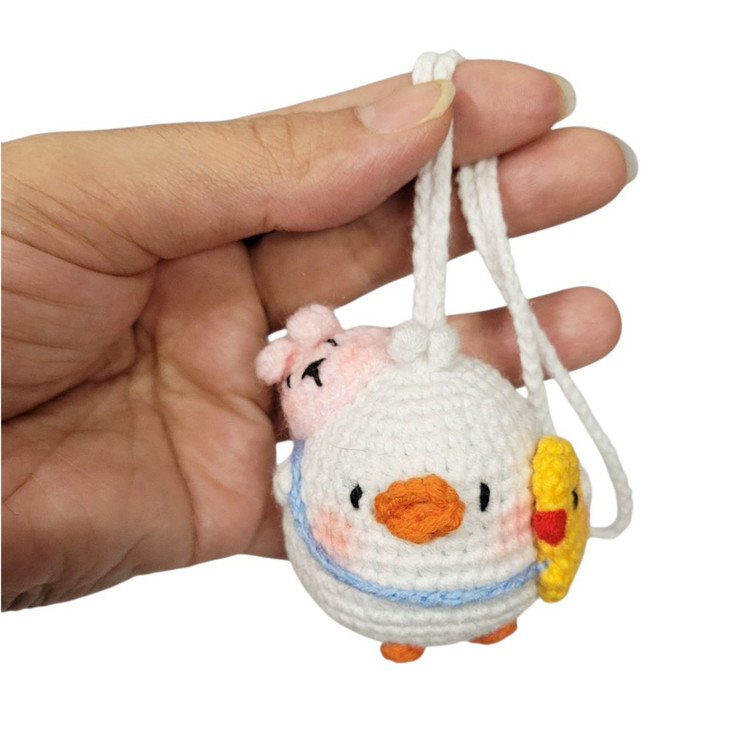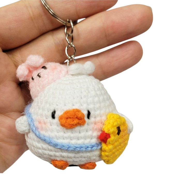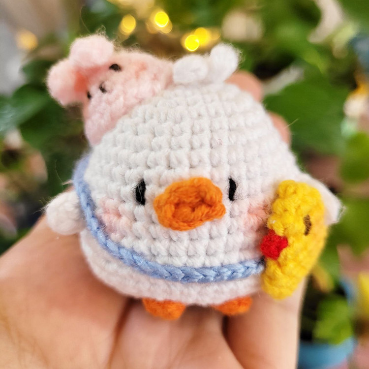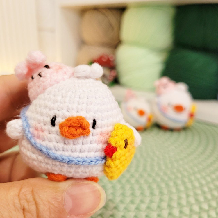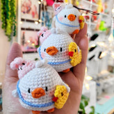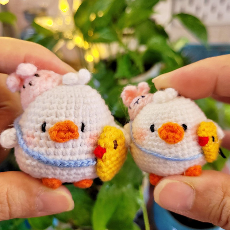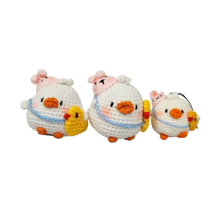 این سری محصول با کاموای مرغوب خارجی و تماماً کار دست است و قلاب بافی شده و با الیاف درجه یک پر شده و خانواده ای بسیار بانمک و جذاب هستند و اکسسوری کیف اردک و کلاه خرگوشی دارند.