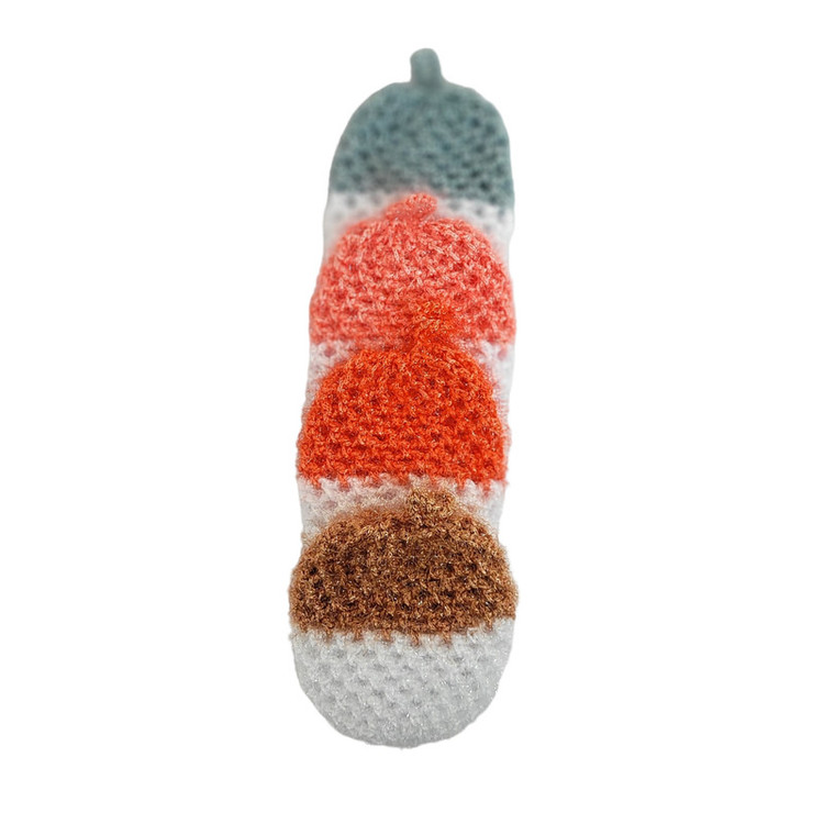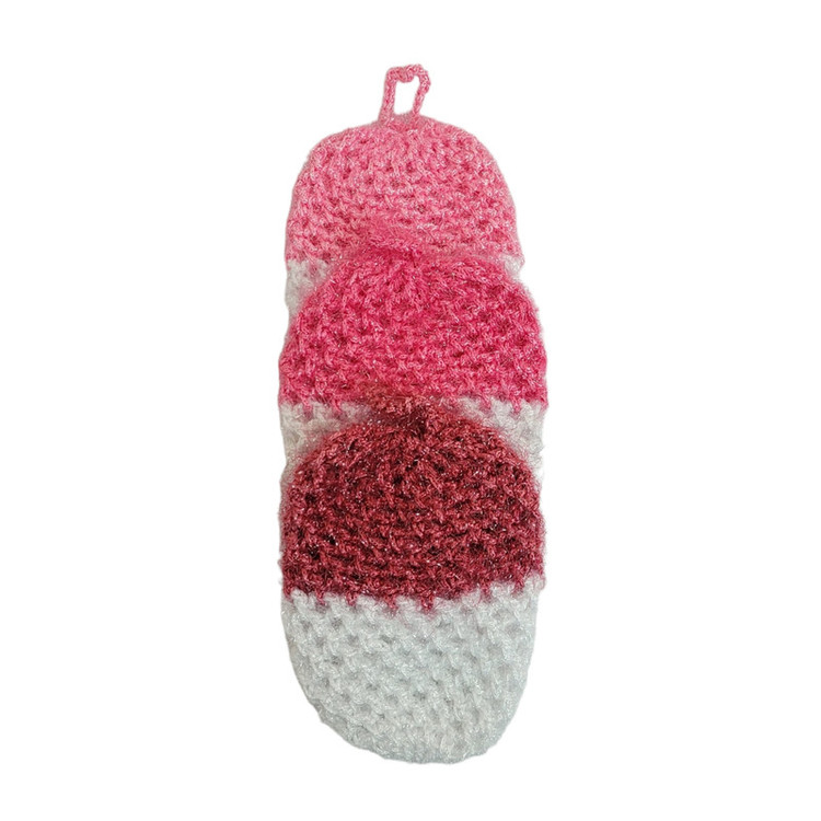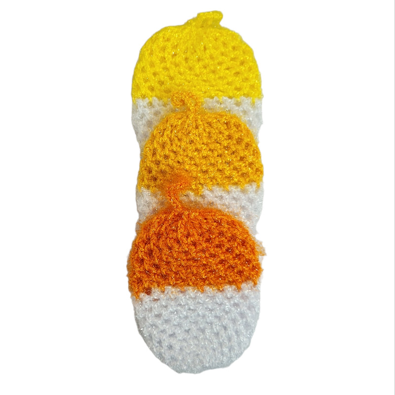 اسکاچ قلاب بافی دو رنگ طرح آناناس با کاموای سوزنی و با کیفیت بالا بافته شده است و برای شستشوی ظروف مختلف بخصوص ظروف تفلون مناسب میباشد.